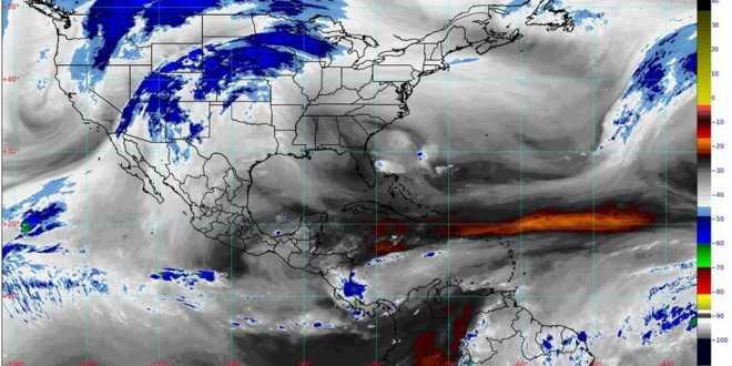 Finalmente, una circulación anticiclónica en niveles medios de la atmósfera mantendrá cielo de despejado a parcialmente nublado y ambiente de cálido a caluroso, con temperaturas máximas de 35 a 40 grados Celsius en zonas de Chiapas, Colima, Guerrero, Jalisco, Michoacán, Nayarit, Oaxaca, Sinaloa, y de 30 a 35 grados Celsius en sitios de Campeche, Morelos, Nuevo León, el suroeste de Puebla, Quintana Roo, Tabasco, Tamaulipas, Veracruz y Yucatán.