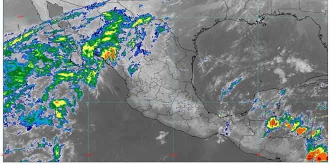 Se prevén intervalos de chubascos (de 5 a 25 milímetros [mm]) en Campeche, Chiapas, Guerrero, Michoacán, Oaxaca, Quintana Roo, Tabasco, Veracruz y Yucatán, y lluvias aisladas (de 0.1 a 5 mm) en Coahuila, Colima, Estado de México, Hidalgo, Jalisco, Nuevo León, Puebla y Tamaulipas.