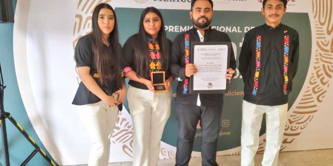 En la ceremonia de entrega del Premio Nacional de la Juventud 2021, el director del Instituto Mexicano de la Juventud (IMJUVE), Guillermo Rafael Santiago Rodríguez, reconoció a cuatros jóvenes del municipio de Balancán, por su proyecto “Biofita, una plaga que da vida”.