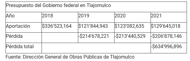 Tlajomulco de Zúñiga enfrenta un recorte presupuestal del Gobierno federal en obra pública que ya asciende a 634 millones 996 mil pesos durante los últimos tres años, lo que impacta en la prestación de servicios y la calidad de vida de los habitantes del municipio.