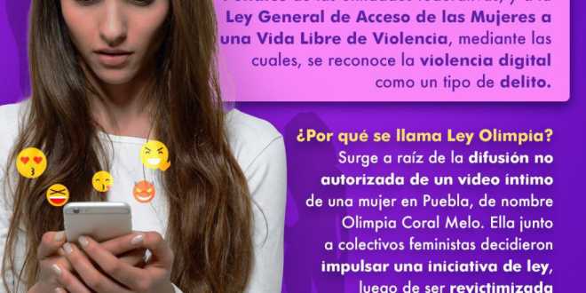 Explica que se le llama Ley Olimpia, a raíz de la difusión no autorizada de un video íntimo de una mujer en Puebla, de nombre Olimpia Coral Melo. Ella junto a colectivos feministas decidieron impulsar una iniciativa de ley, luego de ser revictimizada por las autoridades.
