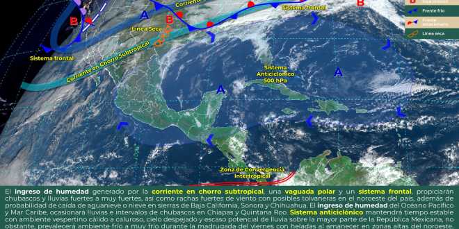 De acuerdo al organismo se esperan vientos del Este y Sureste, de 10 a 18 kilómetros por hora y rachas de 20 a 35 kilómetros por hora, con temperaturas máximas de 28 a 31 grados centígrados y mínimas de 20 a 23 grados.