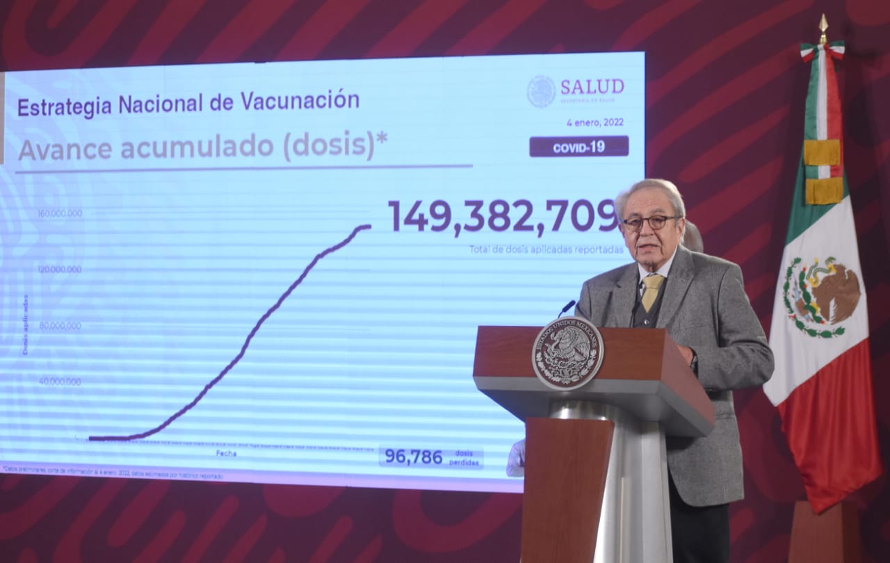 Sobre el avance del Plan Nacionalde Vacunación, el titular de Salud informó que se han suministrado a nivel nacional un total de 149.3 millones de dosis lo que representa a 82 millones de personas inmunizadas; 89 por ciento de ellas cuenta con esquema completo.