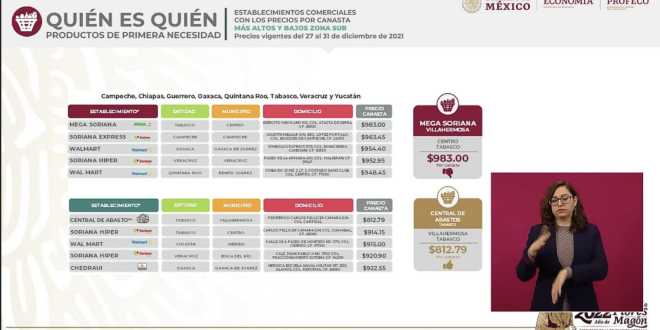 Ricardo Sheffield Padilla, titular de la Profeco informó este lunes en la mañanera que la «Mega Soriana» ubicada en el velodromo de Ciudad deportiva es la tienda con la canasta básica más cara en el sureste de México con un costo de 983 pesos.