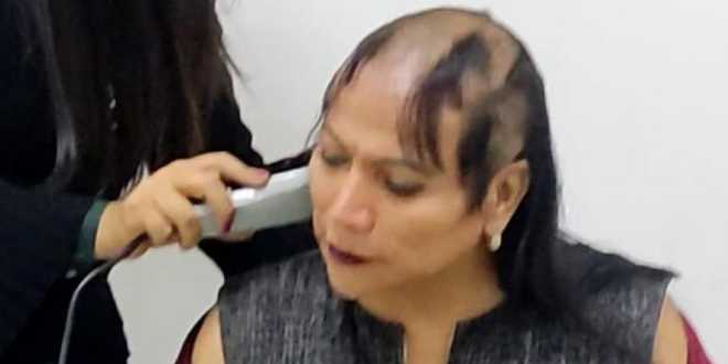 Salma Luévano Luna, diputada de Morena, se manifestó rapándose para condenar los comentarios considerados “transfóbicos” del panista Gabriel Quadri.