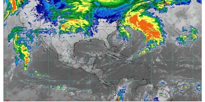 Se pronostican chubascos (de 5 a 25 milímetros [mm]) en Chiapas, Colima, Guerrero, Jalisco, Michoacán, Oaxaca, Tabasco y Veracruz, y lluvias aisladas (de 0.1 a 5 mm) en Baja California, Sonora, Chihuahua, Durango, Estado de México, Puebla y Quintana Roo. En Guerrero, Jalisco, Michoacán y Oaxaca, las precipitaciones se acompañarán de granizo.