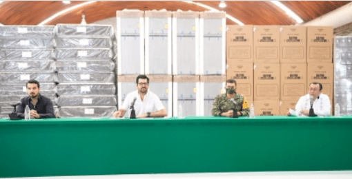 Acompañado por el teniente coronel Leoncio Zepeda Guzmán, en representación del General Cristóbal Lozano Mosqueda, comandante de la Trigésima Zona Militar, invitó a los beneficiarios a concluir su trámite, y acudir de lunes a domingo en horario de 8:00 a 18:00 horas al Centro de Acopio ubicado en la Nave 1 del Parque Tabasco “Dora María” en el municipio de Centro.