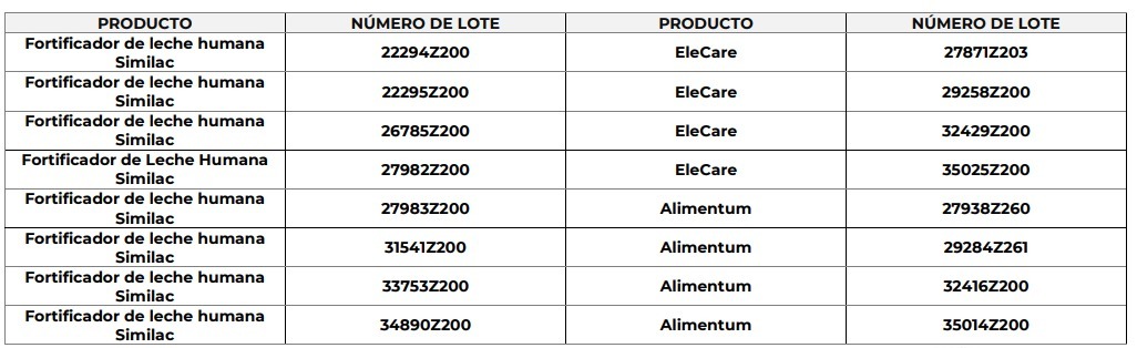 Evitar el uso y consumo de los productos con los números de lote antes citados, y, en caso de contar con ellos, contactar con la empresa a través del teléfono 800-3688-742 o correo nutricion@abbott.com