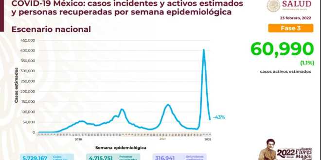 El Informe Técnico Diario muestra que continúa el descenso en el número de casos activos de COVID-19, con 60 mil 990 personas que reportaron signos y síntomas en los últimos 14 días, que representan 1.1 por ciento del total registrado desde el inicio de la pandemia. Asimismo, cuatro millones 715 mil 751 personas se han recuperado de la enfermedad.