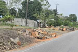 Este lugar se caracteriza por poseer una gran cantidad de vegetación, y son muy representativos de aquí los árboles gigantes en las orillas de la vía, pero ahora, el panorama es muy distinto, pues solo se observan troncos y restos de lo que fueron al menos ocho árboles que daban sombra y ofrecían una vista singular.