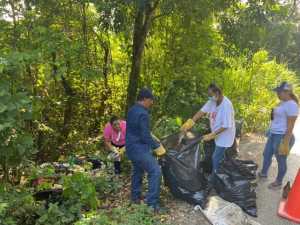 Las bolsas de basuras iban llenándose de todo residuo inorgánico que tira la gente a su paso, desde bolsas de frituras, hasta botellas de vidrio que recogieron en el tramo carretero serrano, a fin de dar una imagen limpia a los visitantes de las zonas de Oxolotán y Tapijulapa.