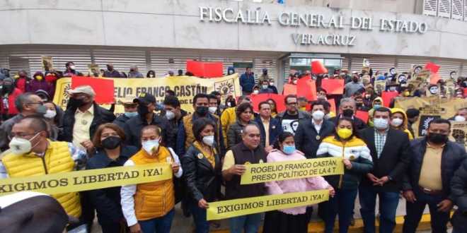 A casi dos semanas de que la Suprema Corte de Justicia de la Nación (SCJN) declarara inconstitucionalidad el delito de ultrajes a la autoridad que se aplica en Veracruz, y que mantiene presos a políticos de oposición, legisladores y militantes del PRD se manifestaron afuera de la Fiscalía General de ese estado en demanda de la liberación de Rogelio Franco, en prisión desde hace un año.