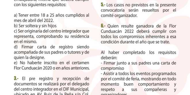 El Gobierno Municipal de Cunduacán y el DIF Municipal emiten la siguiente convocatoria para participar en la elección de la «Flor Cunduacán 2022».