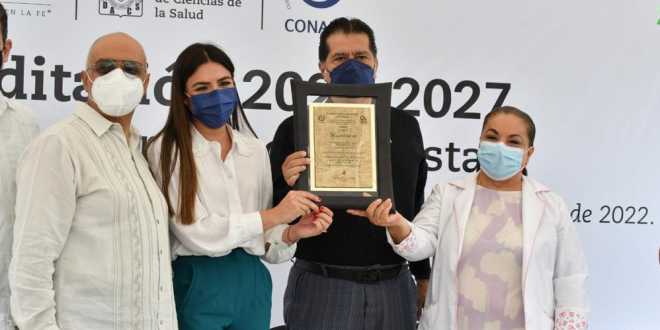 En la ceremonia realizada de manera híbrida, estuvieron presentes la directora General de Planeación y Evaluación Institucional, Verónica García Martínez; el Doctor en Alta Dirección Antonio Arenas Ceballos, quien acudió en representación de la secretaria de Salud del Estado, Silvia Roldán Fernández; así como el presidente de la Comisión de Acreditación de la DACS, Juan Carlo Miranda Ortiz, entre otros funcionarios universitarios.