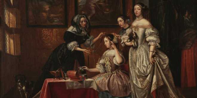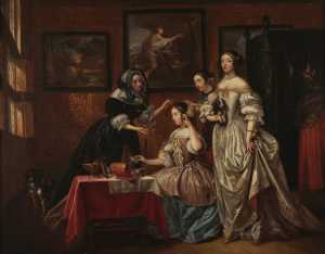 Lancelot Volders (Bruselas, Bélgica, ca. 1657-1703) Damas con sirvientas ca. 1655-1700