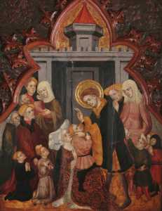 Luis Borrassá (ca. 1360 – ca. 1426). San Hipólito bendiciendo a su familia al regreso del funeral de San Lorenzo, ca. 1419 – 1424