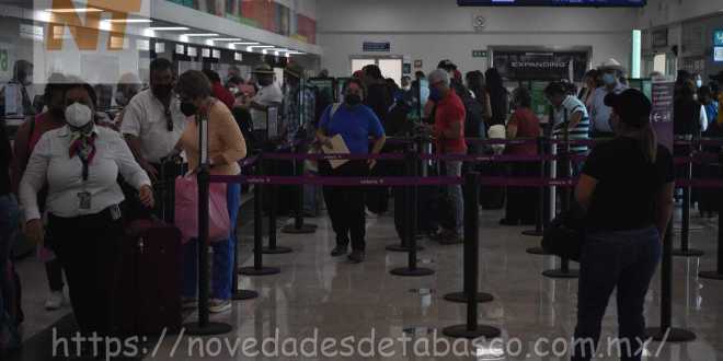 Inicia éxodo vacacional; la terminal aérea de Villahermosa luce llena esta mañana. El administrador del Grupo ASUR, Armando Gamboa reporta una ocupación del 90% en las operaciones de las líneas aéreas.