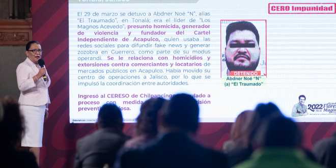 En Tonalá, Jalisco, se detuvo a Abdner «N» el 29 de marzo. Era líder de Los Magnos Acevedo, presunto homicida, generador de violencia y fundador del Cártel Independiente de Acapulco. Ingresó al CERESO de Chilpancingo y está vinculado a proceso con medida cautelar de prisión preventiva oficiosa.