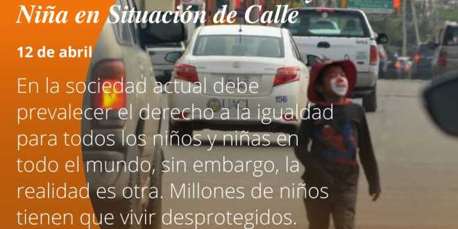 Por iniciativa de Consortium for Street Children (CSC), una de las redes internacionales más importantes dedicadas a la protección de los derechos de las y los niños de la calle, se celebra el 12 de abril el Día Internacional del Niño o Niña en Situación de Calle, como objetivo de este día encontramos que es indispensable lograr que las voces de millones de niños de la calle en todo el mundo sean escuchadas y sus derechos no sigan siendo ignorados. A partir de entonces esta iniciativa ha crecido al punto que en la actualidad se celebra en más de 130 países .[1]