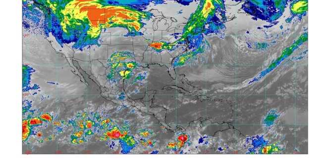 Se prevén intervalos de chubascos (de 5 a 25 milímetros [mm]) en sitios de Chiapas, Hidalgo, Nuevo León, Oaxaca, Puebla, Tamaulipas y Veracruz, y lluvias aisladas (de 0.1 a 5 mm) en zonas de Baja California, Campeche, Chihuahua, Ciudad de México, Durango, Estado de México, Jalisco, Nayarit, Quintana Roo, San Luis Potosí, Sonora Tlaxcala, y Zacatecas. Junto con las lluvias se podrían presentar descargas eléctricas y granizo.