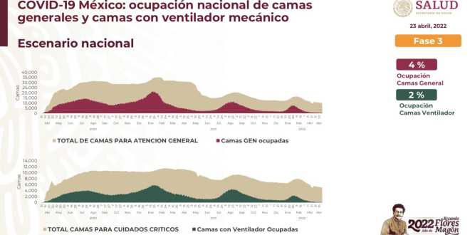 En las últimas 24 horas, la disponibilidad de camas generales para la atención de COVID-19 se ubicó en 96 por ciento y con respirador mecánico en 98 por ciento, señala el Informe Técnico Diario.