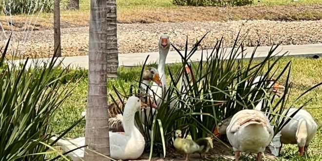Con la novedad que nacieron tres gansitos en el parque del interior de la refinería Olmeca.