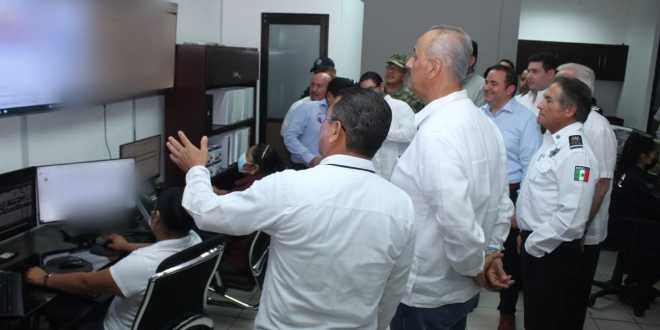 Este día, el gobernador Carlos Manuel Merino Campos realizó un recorrido de supervisión al Centro de Mando y Comunicaciones (C-4), al que este día entregó equipamiento para fortalecer las tareas de videovigilancias y prevención del delito, con una inversión de 104.4 millones de pesos.