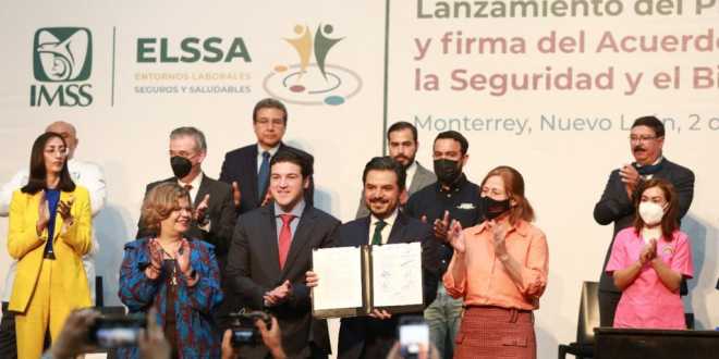 El Instituto Mexicano del Seguro Social (IMSS), el gobierno de Nuevo León, integrantes del gabinete del gobierno federal, representantes de los sectores empresarial y de trabajadores presentaron el programa Entornos Laborales Seguros y Saludables (ELSSA), y firmaron el Acuerdo Nacional por la Salud, la Seguridad y el Bienestar de las Personas Trabajadoras, para integrar esfuerzos y establecer una nueva cultura de prevención y promoción de la salud en los centros de trabajo.