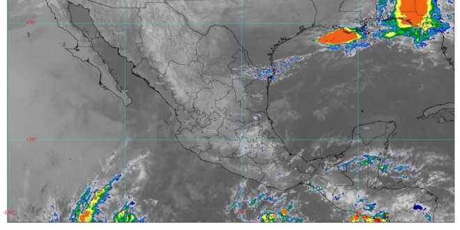 Hoy, un sistema anticiclónico situado en niveles medios de la atmósfera, mantendrá la onda de calor que afecta a la mayor parte de la República Mexicana, con ambiente vespertino de caluroso a muy caluroso; se pronostican temperaturas máximas de 40 a 45 grados Celsius en Campeche, Chiapas, Coahuila, Durango, Guerrero, Jalisco, Michoacán, Morelos, Nayarit, Nuevo León, Oaxaca, Sinaloa, sur de Sonora, Tabasco, Tamaulipas, Veracruz, Yucatán y Zacatecas.