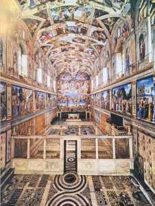 La Capilla Sixtina se localiza en el Vaticano, es una gran sala rectangular de 40.5 metros de largo por 13.5 de ancho, medidas simbólicas ya que coinciden con las del Templo de Salomón. Fue construida como capilla de la fortaleza vaticana. Era conocida como Capella Magna, el papa Sixto IV ordena su reconstrucción entre 1477 y 1480, desde ese momento se le llama Capilla Sixtina.