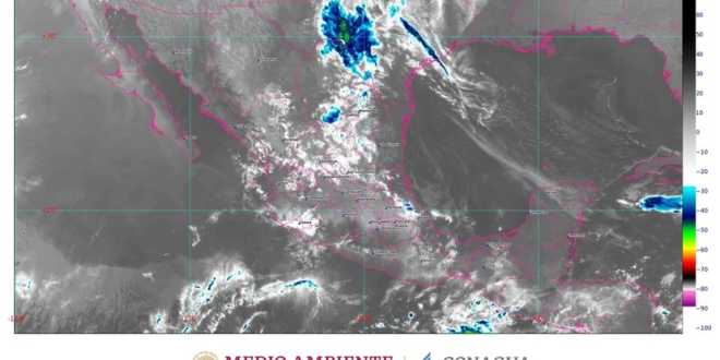 Hoy, una línea seca en el norte de México, inestabilidad en la parte alta de la atmósfera, canales de baja presión sobre la Mesa del Norte, el oriente y sureste del país e inestabilidad en la parte alta de la atmósfera ocasionarán lluvias fuertes (de 25 a 50 milímetros [mm]) en Chiapas, Chihuahua, Coahuila, Durango, Oaxaca, Tabasco y Veracruz; chubascos (de 5 a 25 mm) en Campeche, Colima, Guerrero, Hidalgo, Jalisco, Michoacán, Puebla, Querétaro, Quintana Roo, San Luis Potosí, Tamaulipas, Yucatán y Zacatecas, y lluvias aisladas (de 0.1 a 5 mm) en Aguascalientes, Estado de México, Guanajuato, Nayarit, Nuevo León y Sinaloa.