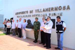 En el acto conmemorativo estuvieron presentes también Margarita Rovirosa González, hija del ex gobernador Leandro Rovirosa Wade y Armando Gamboa Vargas, administrador del aeropuerto.