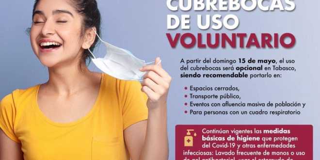😷 A partir del 15 de mayo el uso de #cubrebocas es opcional, siendo recomendable portarlo en espacios cerrados, transporte público o si presentas un cuadro respiratorio, para disminuir el riesgo de contagio por #COVID19. pic.twitter.com/BroiBM1NsI