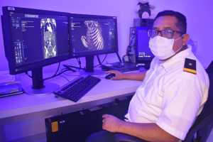 “Contamos con un tomógrafo de cuatro cortes que se inauguró el día del 31 de mayo del año pasado sirve para atender hasta dos pacientes que estén hospitalizados; tenemos centro de control y un área de interpretación; tenemos la más alta tecnología en equipo y servimos con pasión, calidad y sensibilidad humana a nuestros hermanos militares y sus familias”