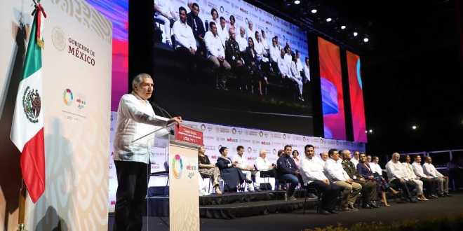 Junto al secretario de Turismo (Sectur), Miguel Torruco Marqués, en el complejo de convenciones Forum Mundo Imperial, el titular de Gobernación señaló “estamos aquí hoy para decir que México es grande, grande por su turismo, grande por sus habitantes; es grande por todos ustedes”.