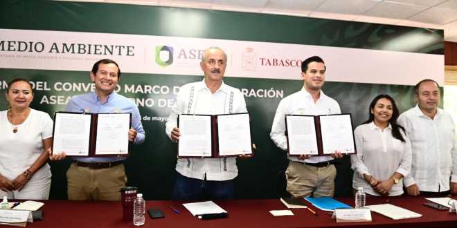 Teniendo como marco el área más grande de humedales de Mesoamérica, donde convergen los ríos más caudalosos de México: el Grijalva y el Usumacinta, el Gobernador explicó que del convenio suscrito con la ASEA se desprenderán iniciativas coordinadas que promuevan y permitan afrontar retos en materia ambiental para la reconciliación, inclusión social y el crecimiento económico.