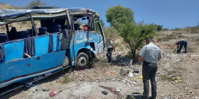 Un autobús particular con personas indocumentadas cayó hacia un acantilado en el kilómetro 2 de la carretera San Luis Potosí-Zacatecas, a la altura del municipio de Mexquitic de Carmona con un saldo preliminar de seis muertos y al menos una treintena de heridos.