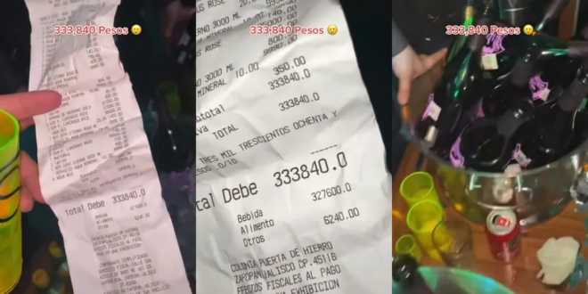 Lara Aguirre fue quien reveló el video, y agrega un audio que dice «Todo es ‘jiji’, ‘jaja’, hasta que llega la cuenta», asegura en referencia a voces que se escuchaban haciendo cuentas, mientras muestra una cuenta por 333 mil 840 pesos, monto por decenas de botellas y bebidas en el bar de Zapopan, Jalisco.