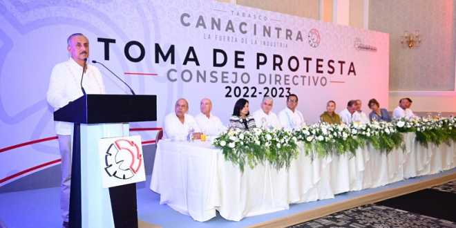 Al tomar protesta al nuevo consejo directivo de la Cámara Nacional de la Industria de la Transformación (Canacintra) Delegación Tabasco, el gobernador Carlos Manuel Merino Campos insistió en su llamado a aprovechar las bondades de los proyectos prioritarios impulsados por el Presidente Andrés Manuel López Obrador, para fortalecer el desarrollo de Tabasco.
