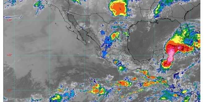 Las lluvias se acompañarán de descargas eléctricas, vientos fuertes y probable caída de granizo, y son generadas por el Potencial Ciclón Tropical Uno, ubicado frente a la costa noreste de Quintana Roo, la vaguada monzónica cercana a las costas de Chiapas y canales de baja presión extendidos sobre la Sierra Madre Occidental y el centro de México.