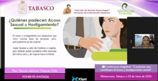 Auspiciada por el Instituto Estatal de las Mujeres (IEM), este viernes la psicóloga Yasmín Adriana Vázquez Ortiz impartió la conferencia sobre “Conductas que constituyen el acoso y hostigamiento sexual”.