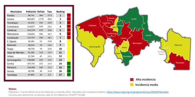 La FGE, los días 11 de cada mes, actualiza las estadísticas de incidencia delictiva con el compromiso de rendir cuentas a la sociedad; por lo que, la población en general puede conocer la información a detalle sobre la distribución geográfica del fenómeno delictivo y el comparativo año con año, en https://www.fiscaliatabasco.gob.mx/.