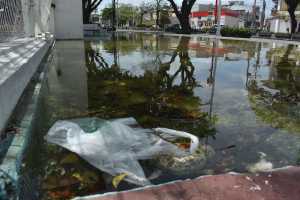 El parque de los Guacamayos, que oficialmente se llama «General José Domingo Ramírez Garrido”, tiene basura por todos lados, no hay guacamayos en la jaula y las fuentes no funcionan.