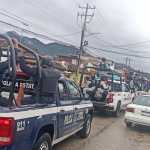 Tuxtla Gutiérrez, Chiapas.- Elementos del grupo interinstitucional conformado por la Secretaría de la Defensa Nacional (Sedena), Guardia Nacional (GN), Secretaría de Seguridad y Protección Ciudadana (SSyPC) y Policía Municipal resguardan el orden público en San Cristóbal de Las Casas, luego de los hechos ocurridos este martes presuntamente derivado de un conflicto social en el Mercado Popular del Norte de esta ciudad.