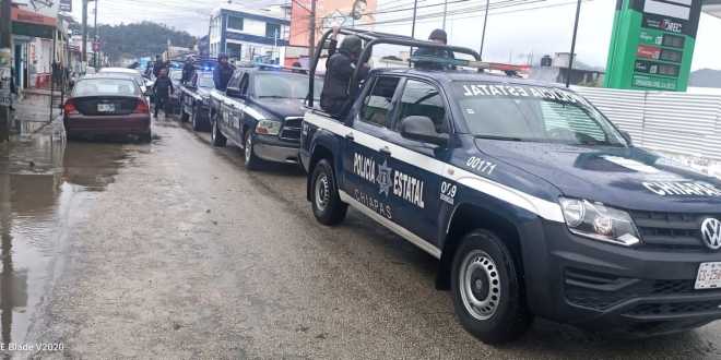 Tuxtla Gutiérrez, Chiapas.- Elementos del grupo interinstitucional conformado por la Secretaría de la Defensa Nacional (Sedena), Guardia Nacional (GN), Secretaría de Seguridad y Protección Ciudadana (SSyPC) y Policía Municipal resguardan el orden público en San Cristóbal de Las Casas, luego de los hechos ocurridos este martes presuntamente derivado de un conflicto social en el Mercado Popular del Norte de esta ciudad.