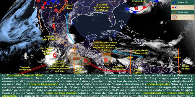 El Instituto de Protección Civil del Estado de Tabasco (IPCET) informó que una zona de baja presión (con probabilidad de desarrollo) al Sur de Guatemala y Chiapas, más el ingreso de humedad y nubosidad a la región, podrán provocar condiciones de lluvia en la entidad.