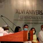 El gobernador Carlos Manuel Merino hizo llegar galardones al personal que cumplió 25, 30, 35 y 40 años de servicio al cual felicitó por su labor, reconocimiento que prodigó a profesores, personal administrativo y alumnos, quienes han hecho posible que la institución llegue a 46 años luego de que el ex gobernador Mario Trujillo García impulsara su creación.
