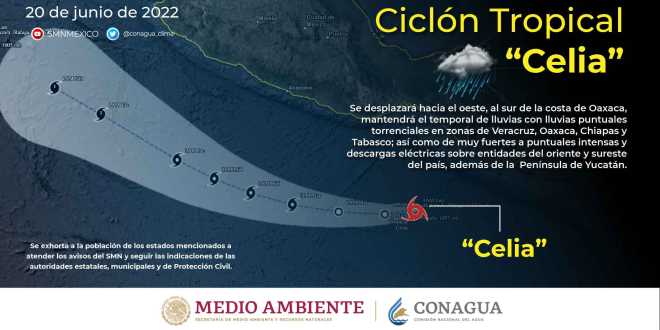 De acuerdo con el pronóstico, la depresión tropical “Celia”, en tránsito hacia al Sur de la costa de Oaxaca, en interacción con un canal de baja presión y la onda tropical número 6, favorecerá un potencial de lluvias torrenciales de 150.1 a 250 milímetros para la subregión Sierra, y los municipios de Huimanguillo y Macuspana.