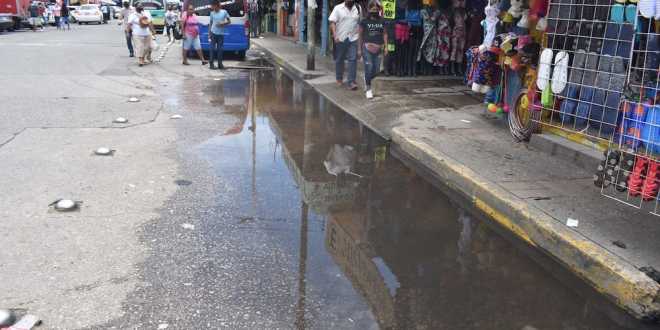 En la calle José María Pino Suárez, muy cerca del mercado que lleva el mismo nombre, existen al menos 3 fugas de agua en las que se desperdician miles de litros del vital líquido diariamente; comerciantes hacen el llamado al SAS para que dé solución a esta problemática.