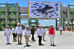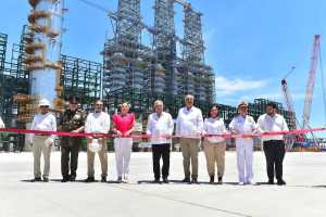 Pasadas las once de la mañana el Presidente Andrés Manuel cortó el listón acompañado de su esposa, Beatriz Gutiérrez; de la titular de Sener, Rocío Nahle; del gobernador del estado, Carlos Manuel Merino; el director de Pemex, Octavio Romero; y los titulares de la Marina y Defensa Nacional, Rafael Ojeda y Luis Cresencio Sandoval, respectivamente